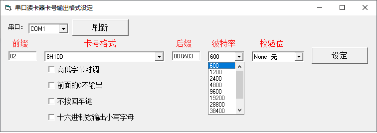 荣士IC-07F,ID-05F串口读卡器设定输出格式 |