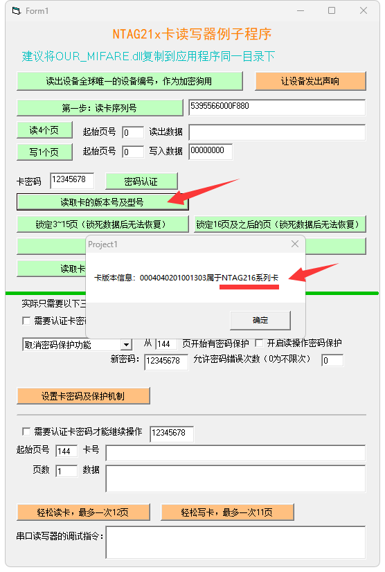 提供了读取版本数据的函数piccgetversion_ntag,以下为VB6.0的例子代码