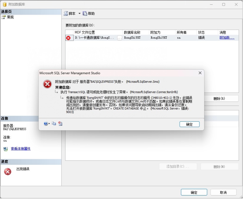 解决因断电死机造成的SQL数据库置疑、无法附加等错误 |