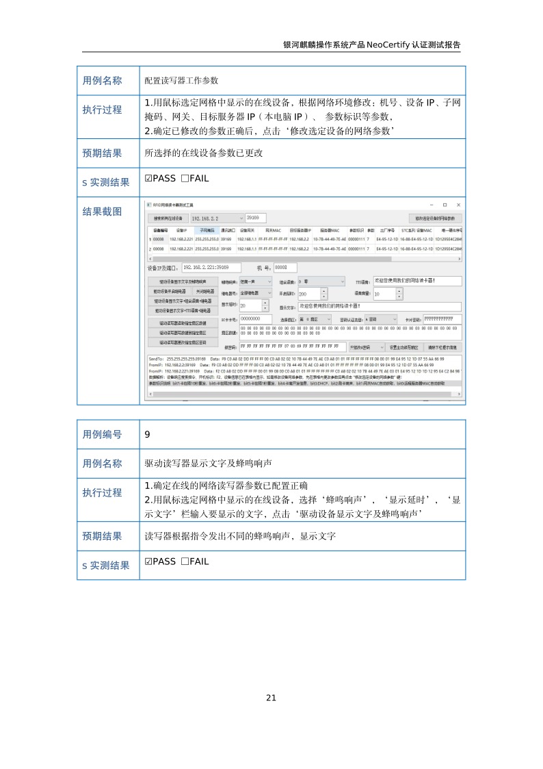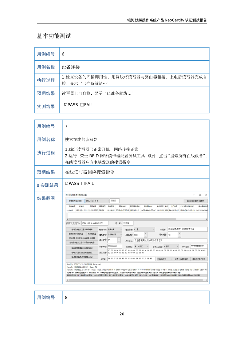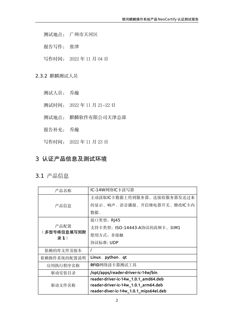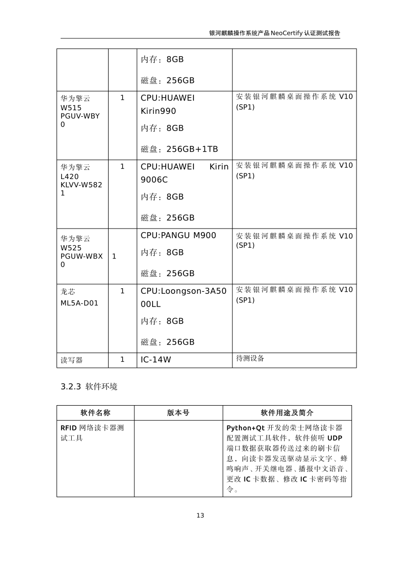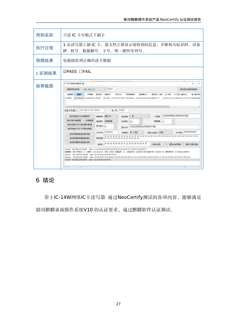 荣士RFID网络读写器IC-14W银河麒麟桌面操作系统兼容适配认证测试报告 |