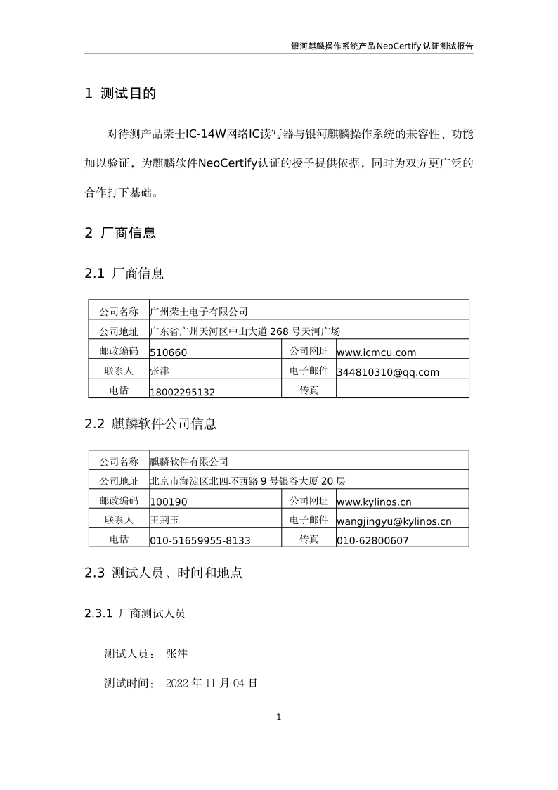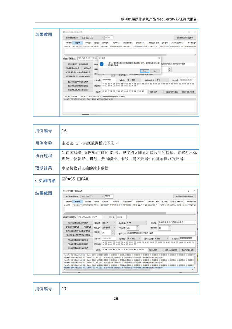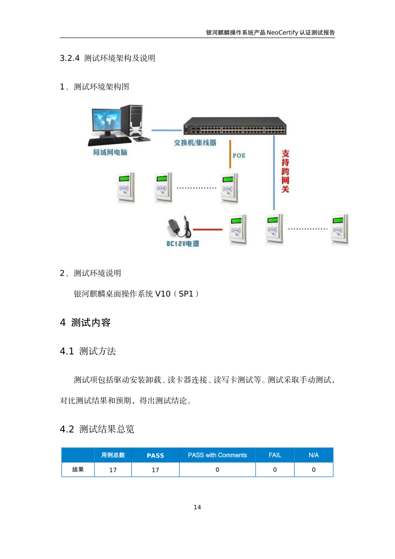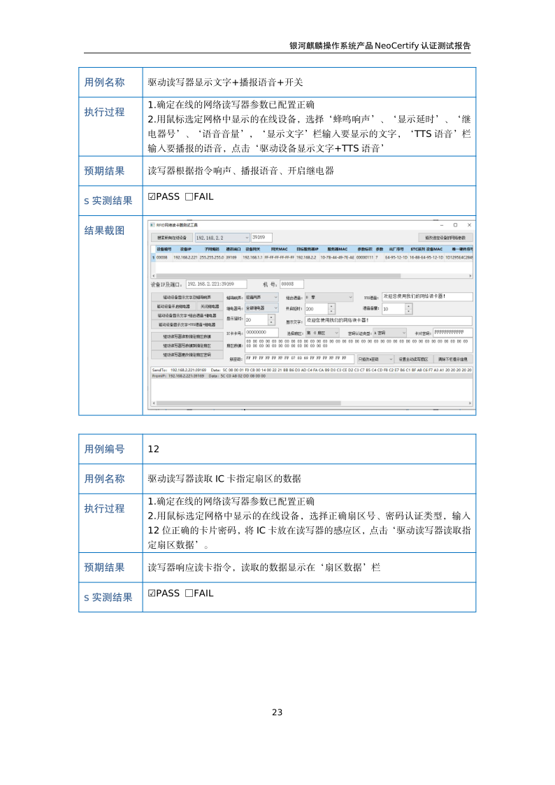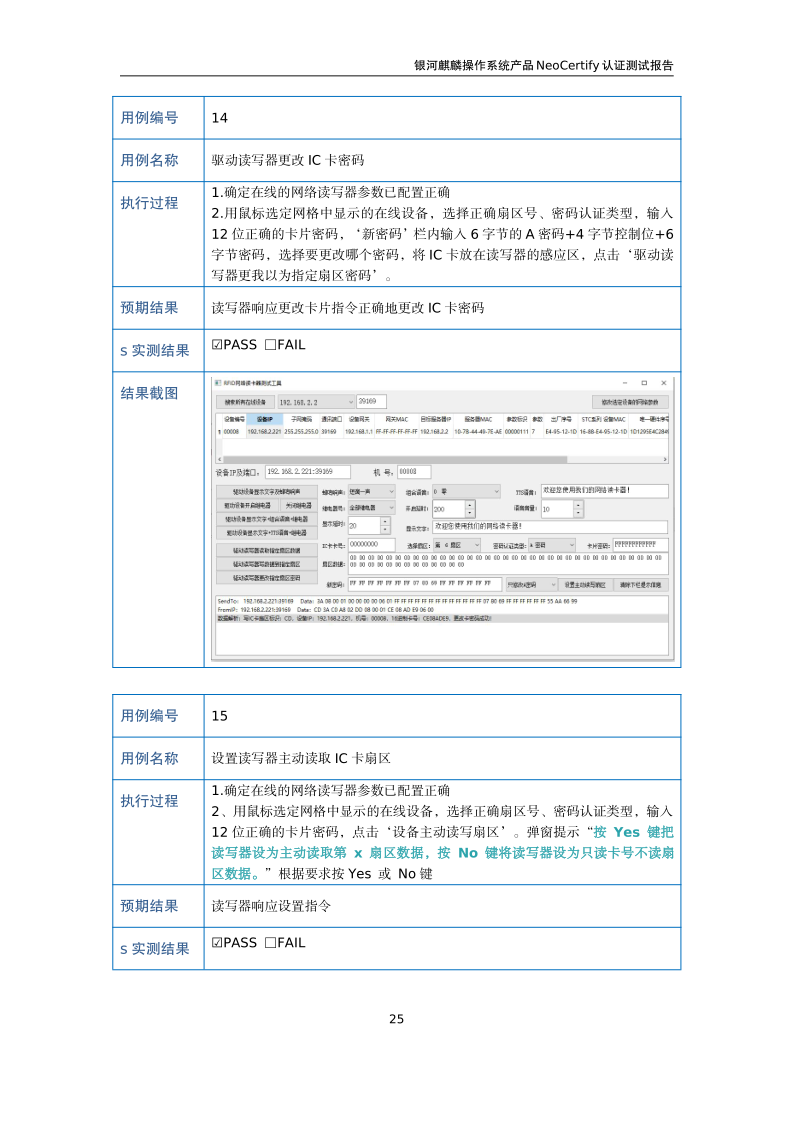 荣士RFID网络读写器IC-14W银河麒麟桌面操作系统兼容适配认证测试报告 |