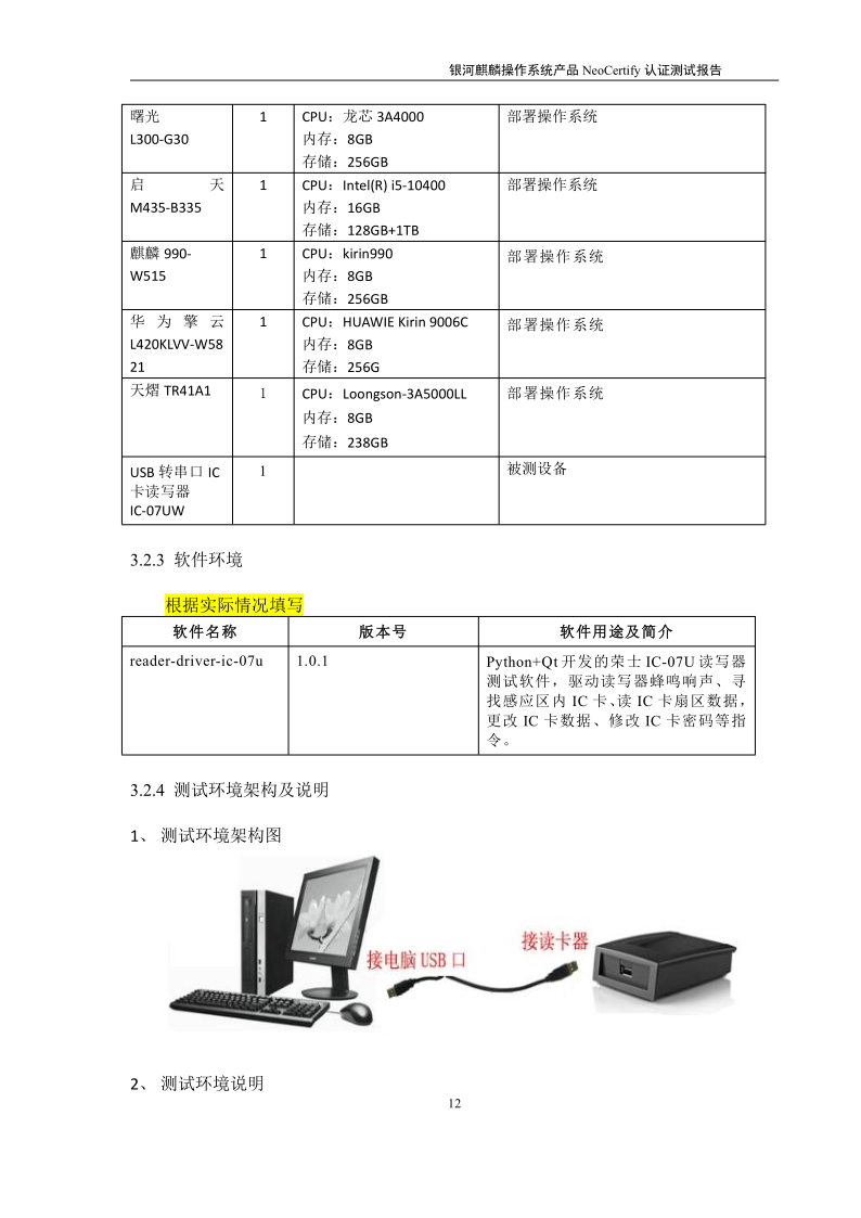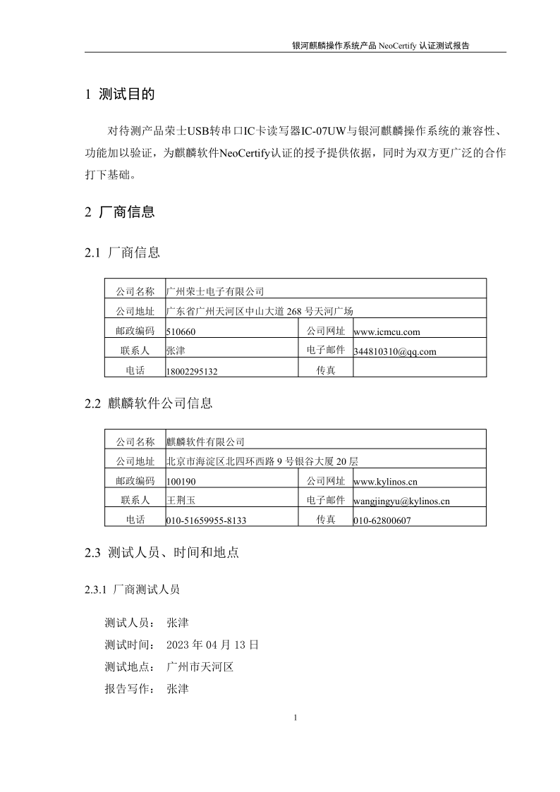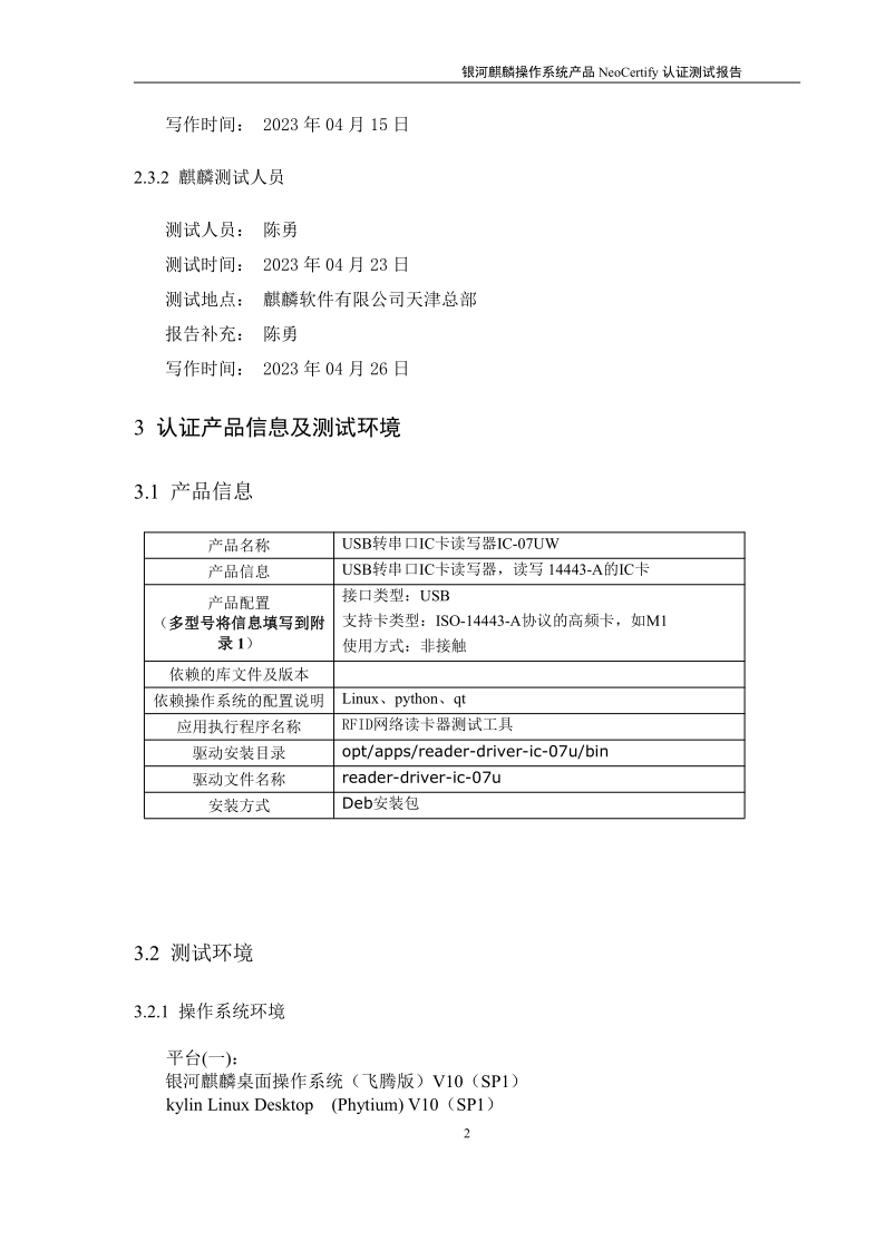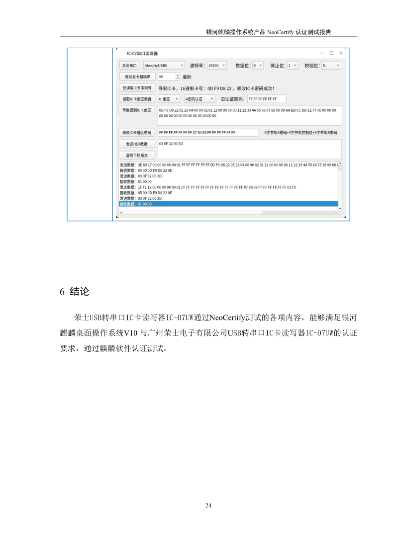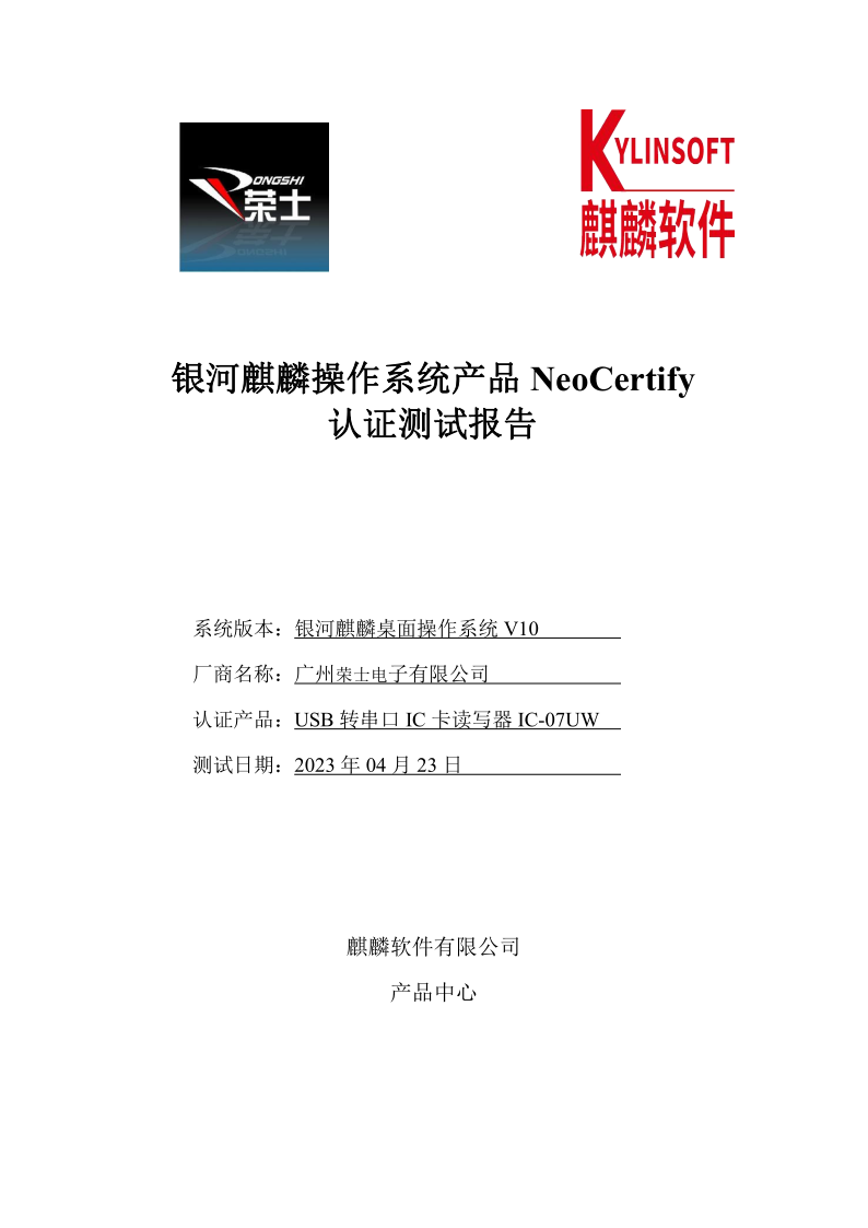 荣士USB转串口IC卡读写器银河麒麟桌面操作系统兼容适配认证测试报告 |