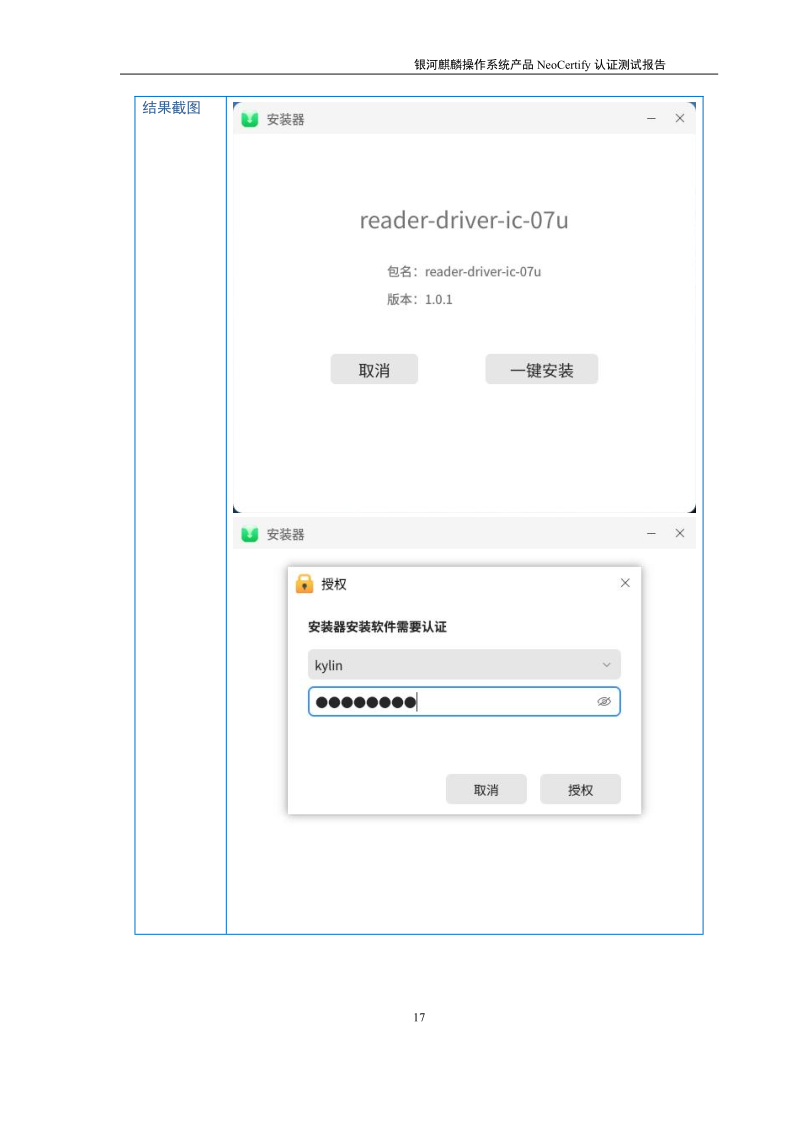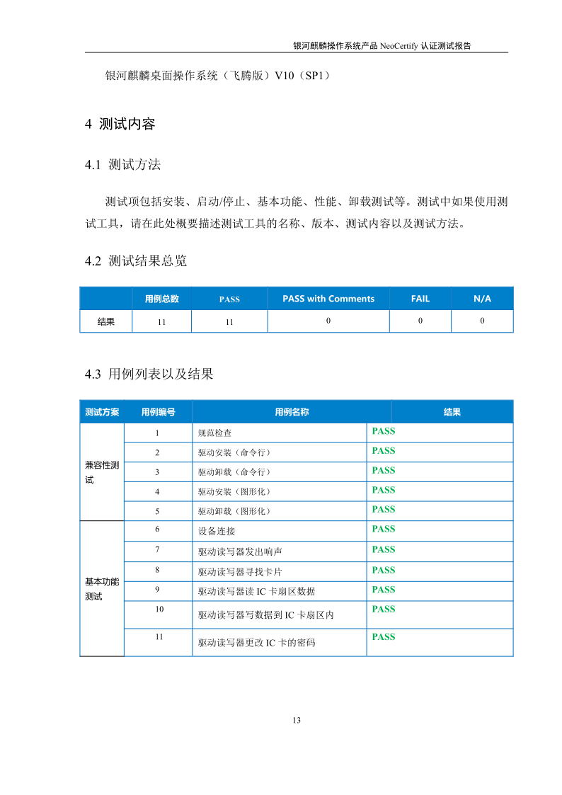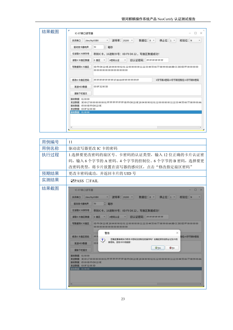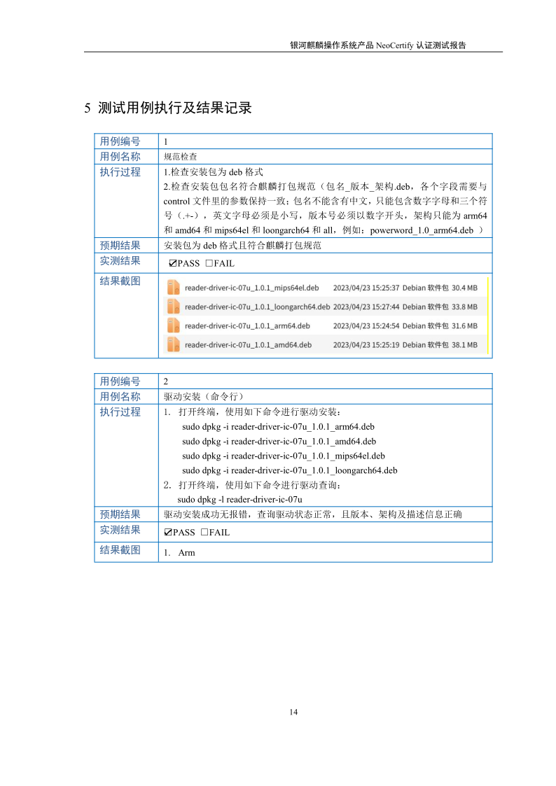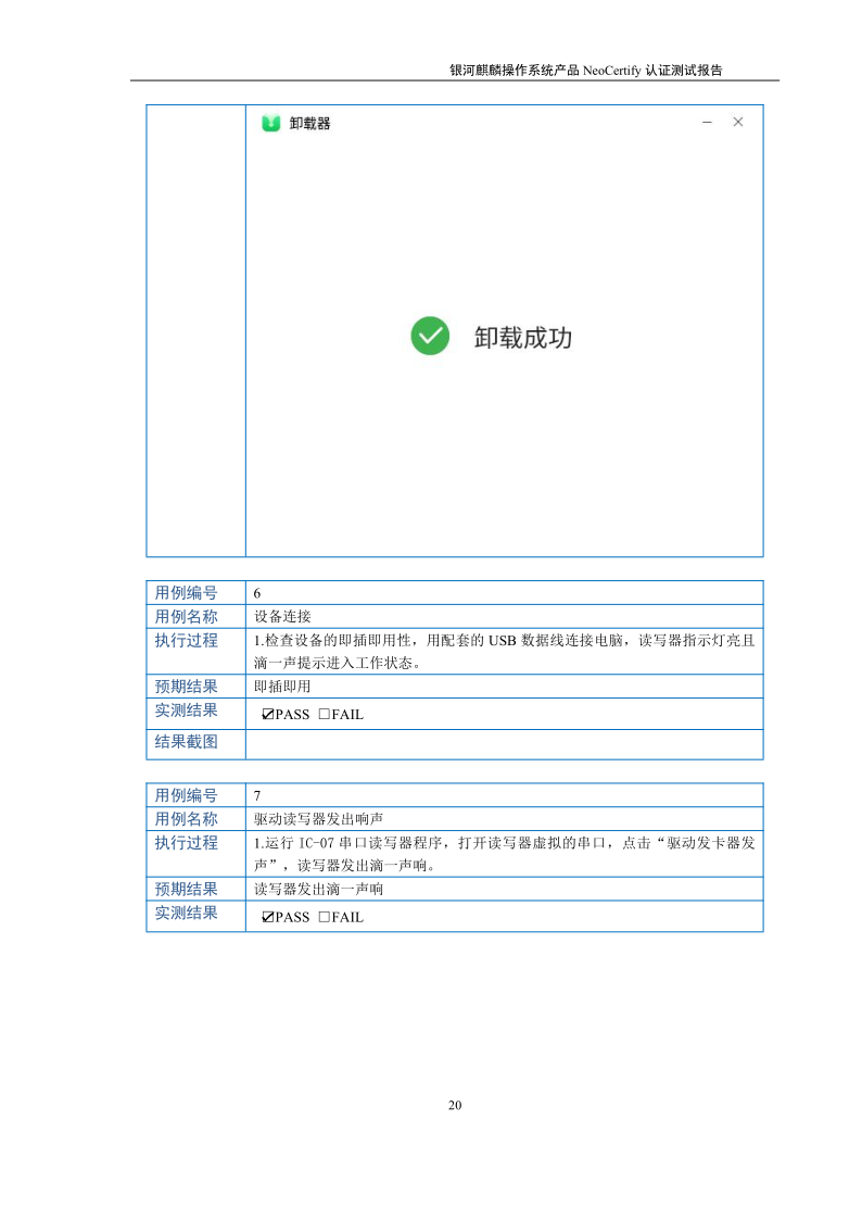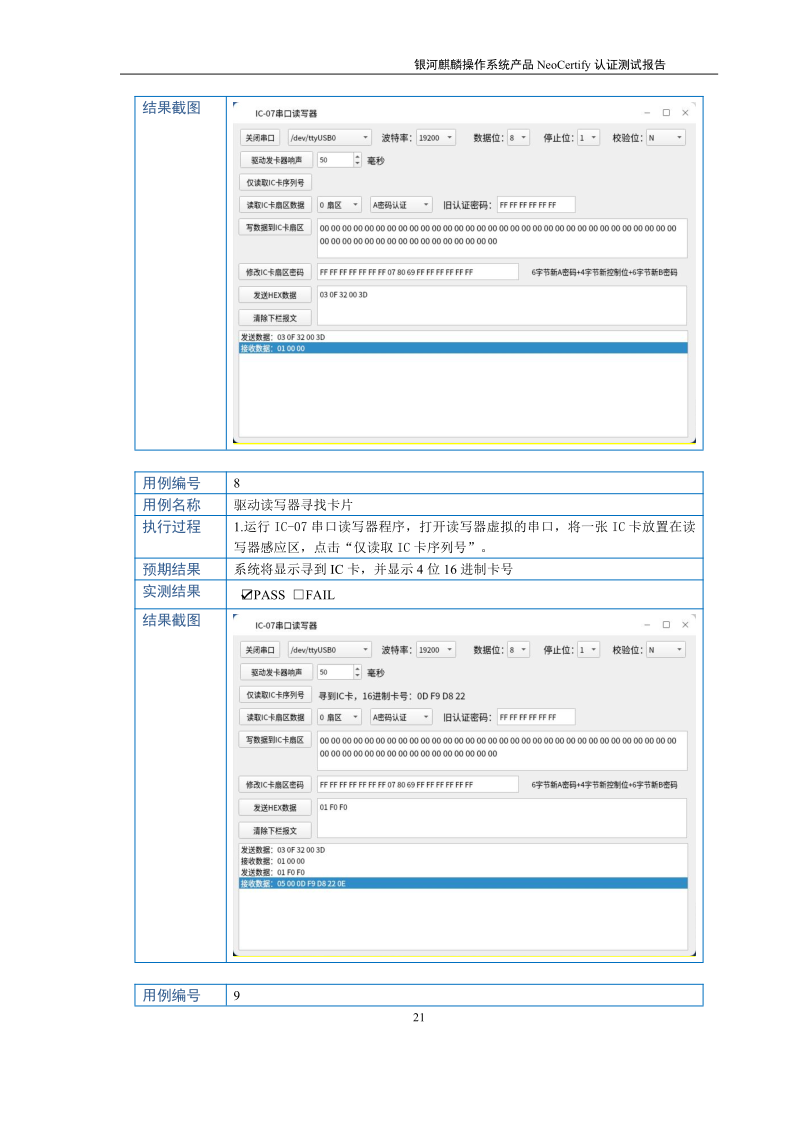 荣士USB转串口IC卡读写器银河麒麟桌面操作系统兼容适配认证测试报告 |