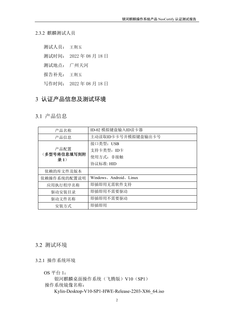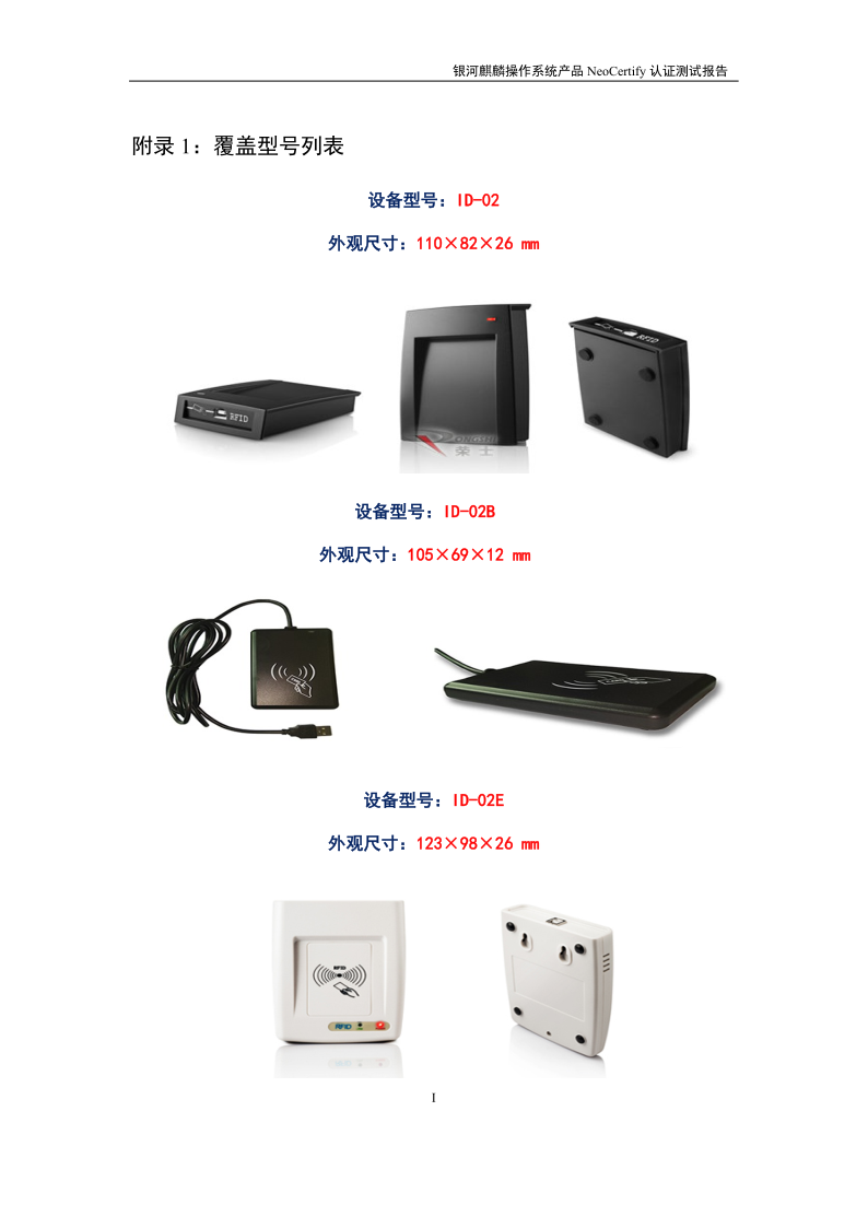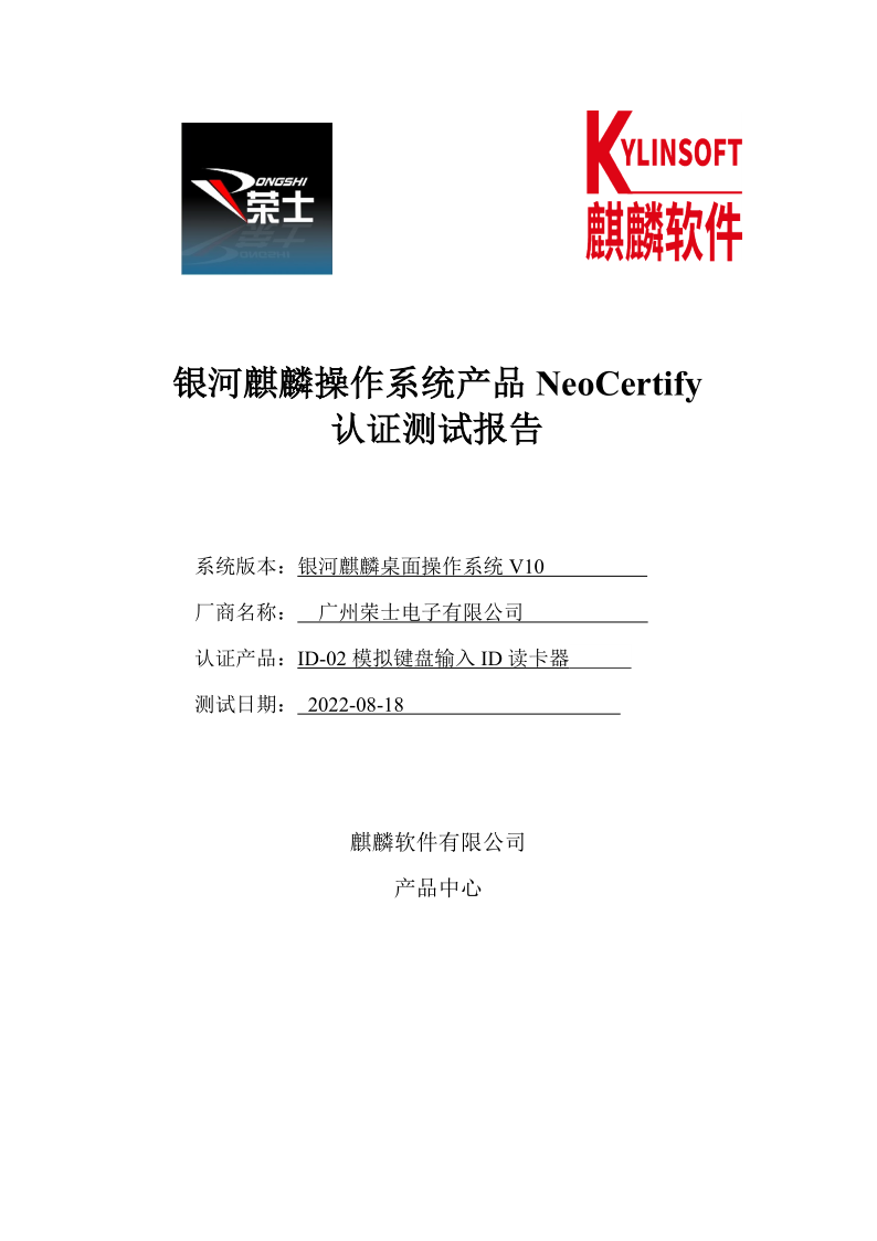 荣士模拟键盘输入RFID读卡器银河麒麟桌面操作系统兼容适配认证测试报告