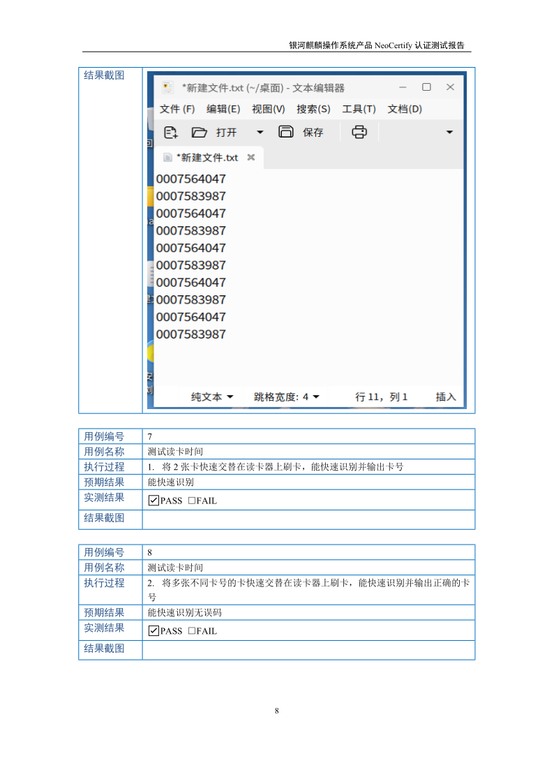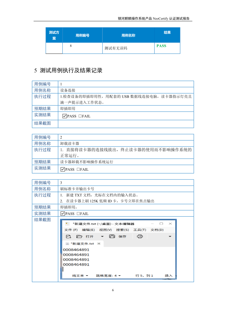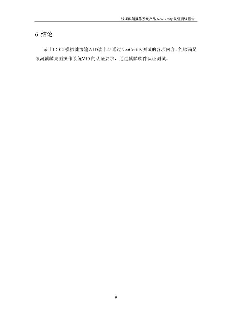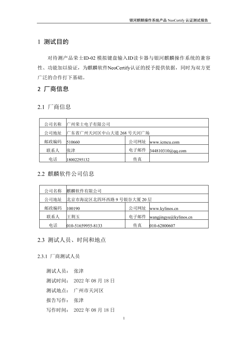 荣士模拟键盘输入RFID读卡器银河麒麟桌面操作系统兼容适配认证测试报告