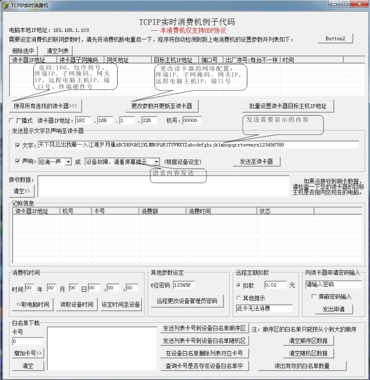 我们提供功能强大的配套管理系统,同时也提供详细的二次开发文档及 Android、Java、Python、PHP、C#、VB.NET、DELPHI、VB6、VC、C++Builder、PowerBuilder、VFP 等各种开发工具示例源码,软件开发公司可快速地将本设备接入现有的一卡通管理系统,并可自己编程实现客户要求的任何功能。