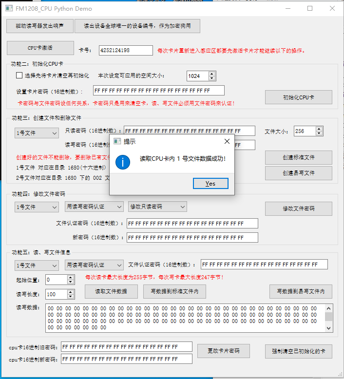 支持Mifare Desfire Ev1、Ev2、Ev3 的DES、3K3DES、AES加密读写: