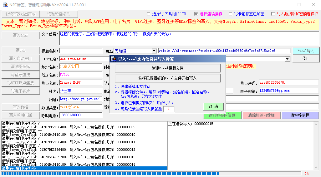 支持批量URI网址等NDEF信息读写: