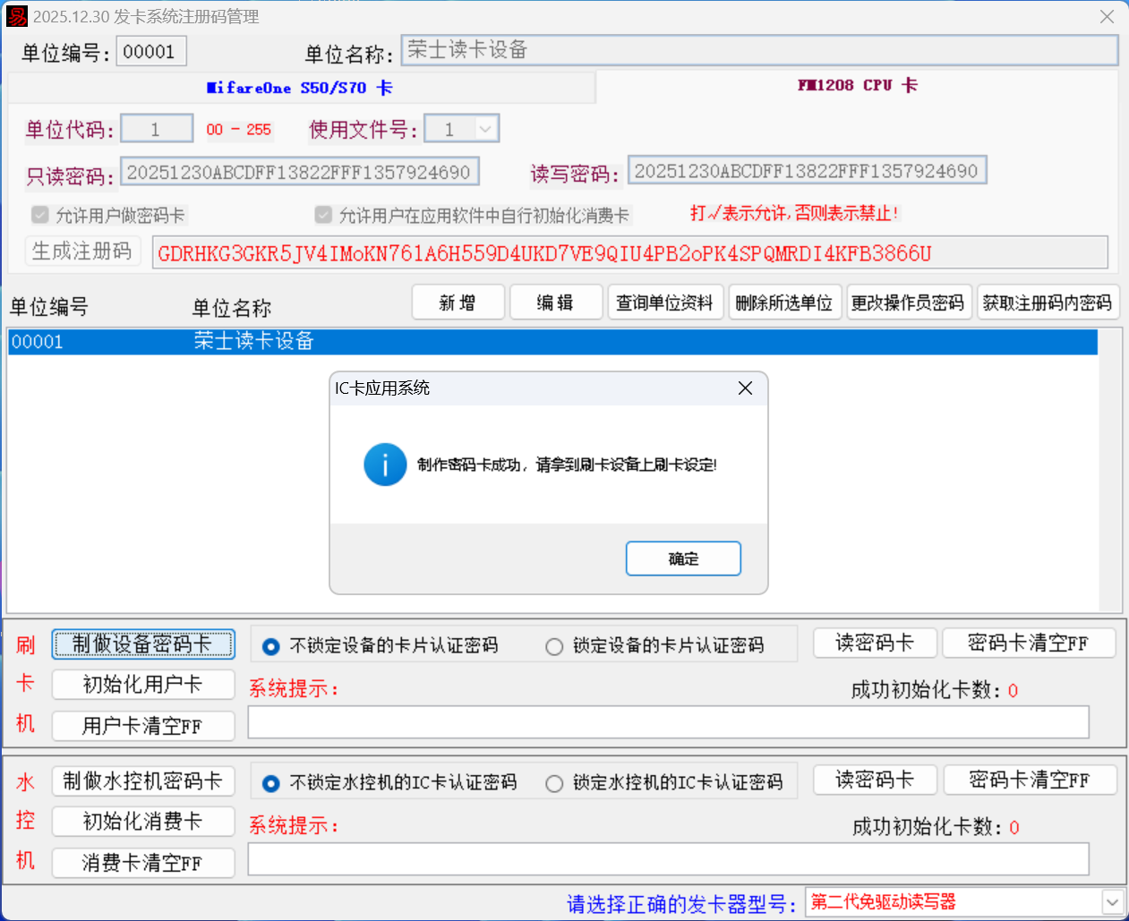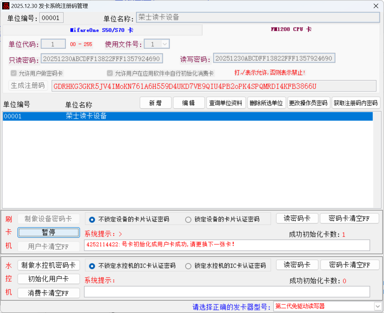 一、制做读卡器认证密钥设置卡,将做好的设置卡在读卡器上刷卡设置